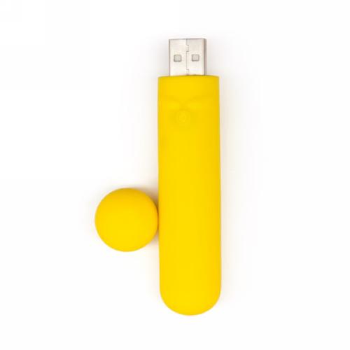 - This lipstick-sized adorable yellow bullet features an integrated USB port for hassle-free charging.